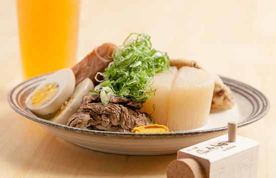 比叡山のふもとで作る「京都・一乗寺ブリュワリー」がプロデュースするビアパブ。「ビールと楽しむおばんざい」をテーマに、出来立ての樽生クラフトビールを京風おばんざいとともに楽しめます。約6種類あるフレーバーはどれも個性的。まずは飲み比べセットをどうぞ。