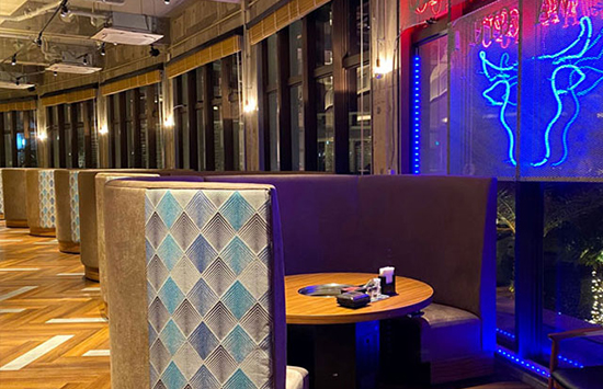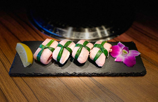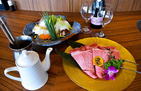 沖縄の豊かな自然で育ったA5ランクの黒毛和牛「山城牛」を使用。一頭から2~3人前しか取れない希少部位が自慢です。新鮮さはもとより、部位ごとに合った厚みや切り方を工夫することで美味しさが一層際立ちます。ラグジュアリーなリゾート空間に半個室席を完備。