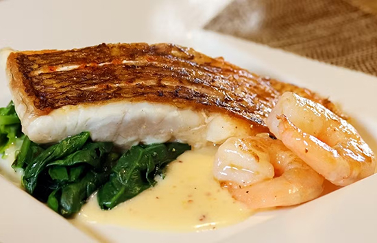 華道家の流木アートが印象的な非日常空間。3つある鉄板カウンターでは、シェフが目の前で絶妙な技を披露。極上の黒毛和牛をはじめ、店内水槽から取り出した真鶴の朝獲れあわびを丁寧にグリルします。美味しさだけでなく見た目の美しさにもこだわった創作料理も魅力。