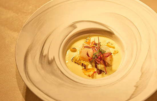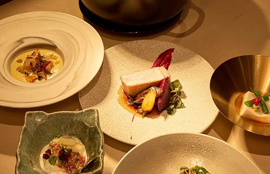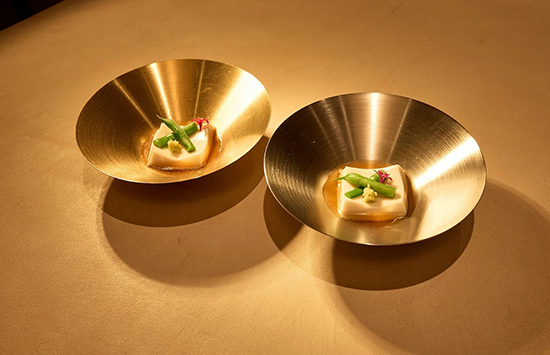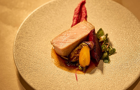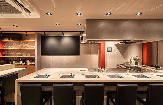 カウンター13席のみで構成されたシックな空間。フレンチと和食、それぞれの料理人が、全国の生産者と会って選び抜いた旬の食材を使い、バターや油を控えた軽やかな一皿に仕上げます。アラカルト中心なのでおひとり様や普段使いにも最適。深夜まで営業しています。
