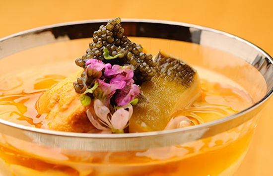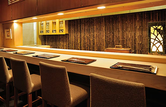 一枚板のカウンターで繰り広げられるのは、寿司と料理を巧みに組み立てた寿司割烹。食材は豊洲で深い信頼関係を築く仲卸から仕入れる天然もの。とりわけ特級レベルのマグロや5年もののすっぽんは、食通が待ち望む逸品です。有名グルメガイドで12年連続一つ星を獲得。