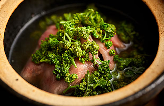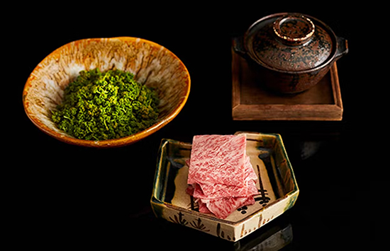 青山通りを少し入ったビルの地下にある日本料理店。店主の確かな技と旬の食材で季節を映した料理の数々を、昼夜ともにコース料理で提供。水出しとお湯出し2種類の昆布出汁と、血合い抜き本枯鰹節を毎日削ってとった出汁を使い分け、繊細な味と香りの逸品に仕立てます。
