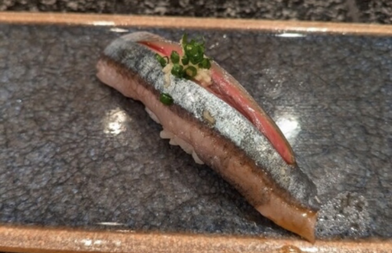 鮮やかな青の暖簾が目印、扉を開けると10席ほどの居心地の良い空間。銀座で腕を磨いた店主が毎朝仕入れる新鮮なネタをはじめ、丁寧に熟成させたネタを使った寿司を味わえます。店主との会話を楽しみながら、にぎりや酒肴で傾けるお酒の美味しさはひとしおです。
