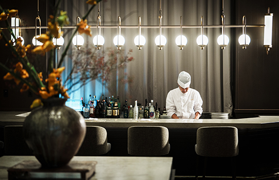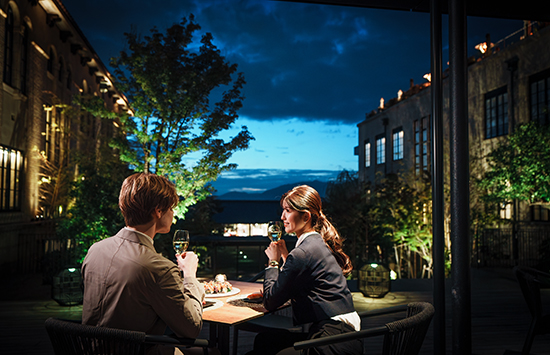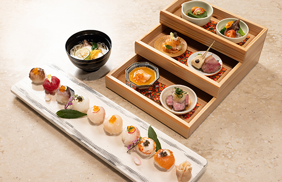 昭和初期に建てられた近代モダン建築の小学校講堂を、1,100冊もの書籍が並ぶレストランライブラリーへと再生した空間。舞妓さんがおちょぼ口で愛らしく食べる姿と重なる京都発祥の手まり寿司など、産地と鮮度にこだわった寿司をお酒とともにご堪能いただけます。