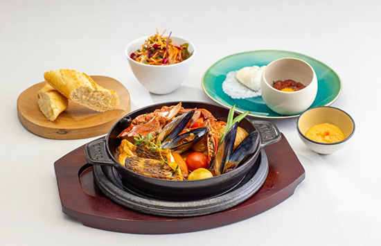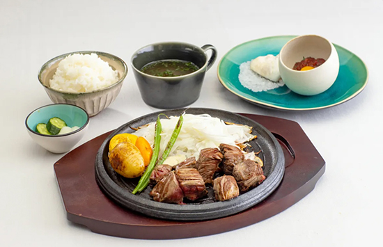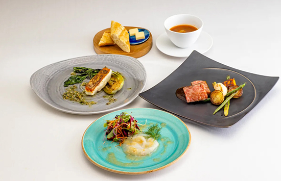 宮古空港から伊良部大橋を渡って車で約20分、美しい伊良部ブルーの海を見渡す高台に建つカフェダイニング。フレンチレストランで修業を重ねたシェフが、宮古島の食材を使ってフレンチベースのひと皿をお届け。専属ソムリエが最高のマリアージュへと導きます。