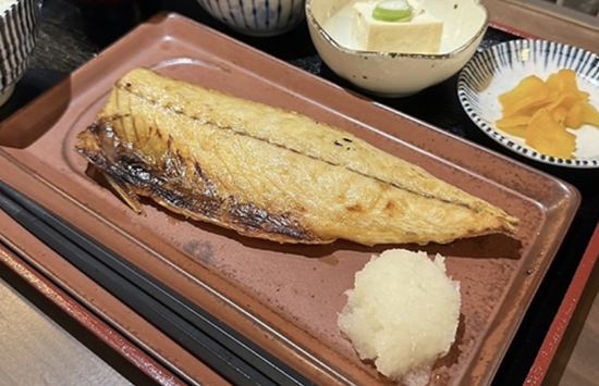 昼は焼魚定食、夜は炭火串焼きなど多彩な居酒屋メニュー