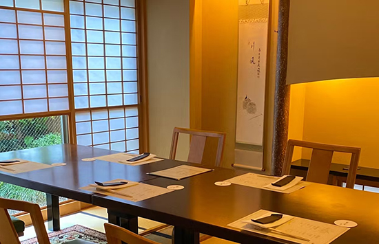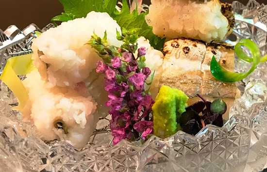 春は桜鯛、夏は鱧、秋は松茸、冬はとらふぐや松葉ガニ。天然の食材を使い、器にこだわって季節を五感で楽しませてくれるのは、70余年の時を刻む老舗割烹の本領。豊後水道で揚がる天然とらふぐは白子焼きも味わえるコースでどうぞ。旬の食材を盛り込んだ会席料理も多彩。